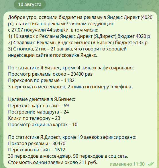 В итоге с проектом работают несколько человек, полная информация о выполненных работах, по выполнению плана и достижения целей и вы всегда в курсе где, как и что работает, эффективность каналов, эффективность «работы» бюджета, в наглядных графиках и таблицах.